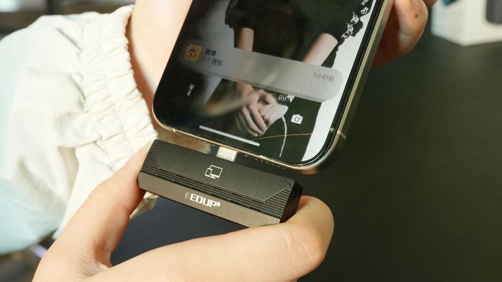 「接收端」依然使用通用的HDMI接口,确保「接收设备」的最大兼容性;而「发射端」则设计为Type-C接口,直接插上支持DP视频输出的手机和平板ipad就能实现投屏,无需独立供电。